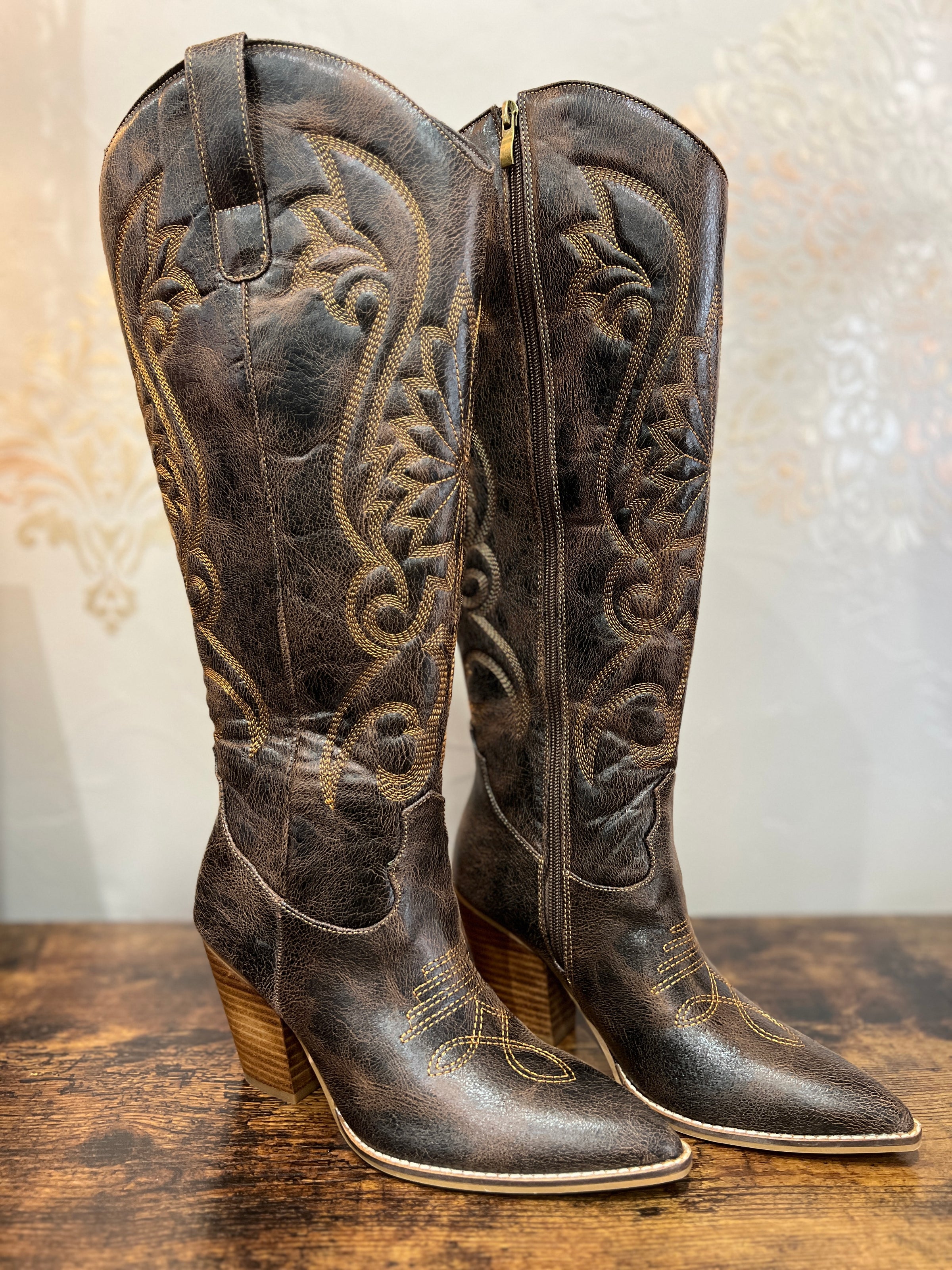 Hey Girl by Corkys "Long Live Cowgirls" Espresso Crinkle Tall Western Style Boot